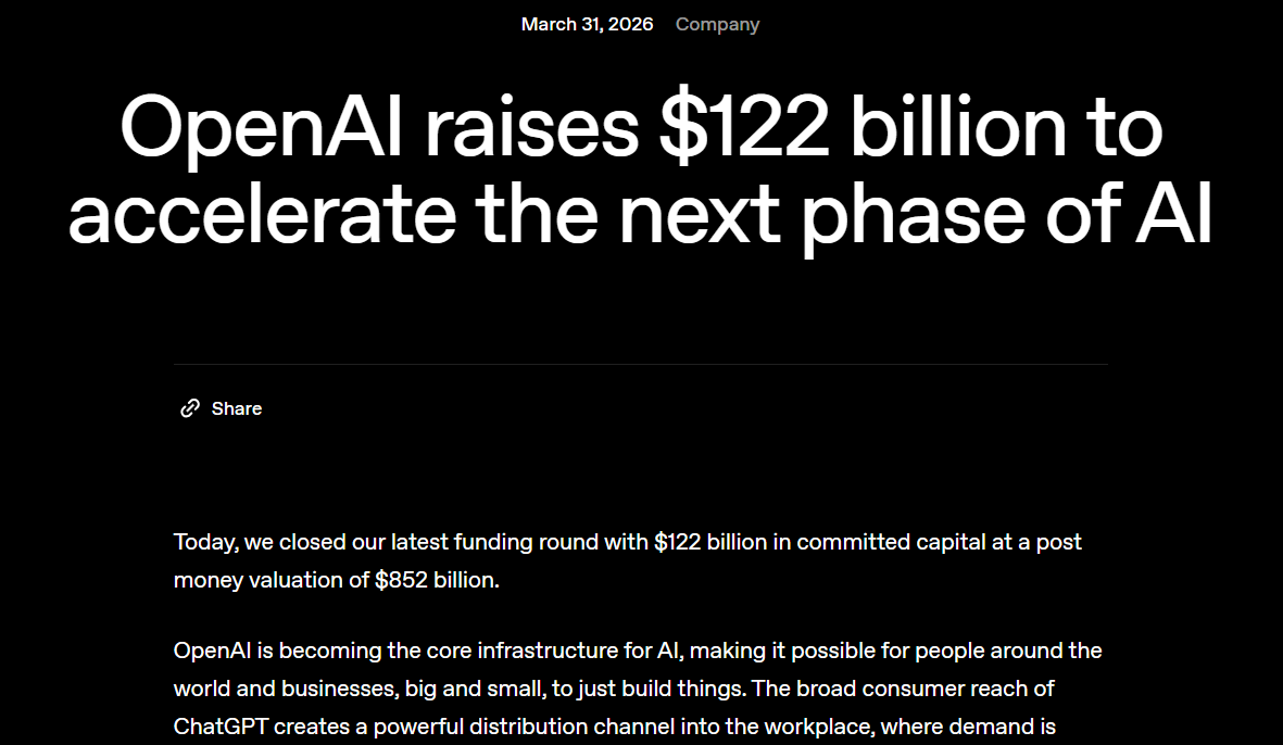 The AI buildout has been given the green light to continue in full force, with OpenAI raising a massive $122 billion at a whopping $852 billion valuation.